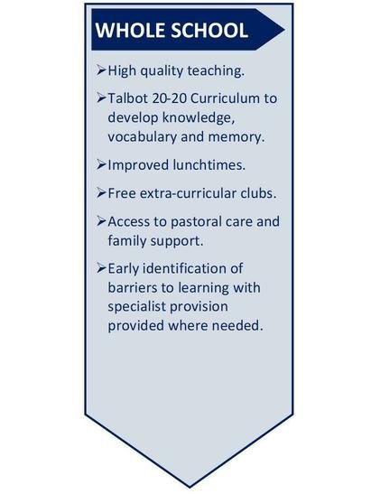 Scroll down the page to see how we support disadvantaged learners throughout their primary school years here at Talbot Primary School. Clicking on the images will enlarge them.